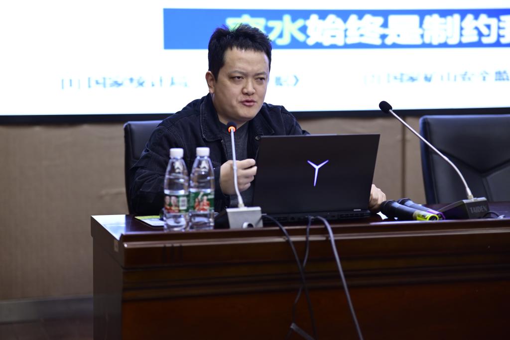 马丹以《深部导水构造岩体径向渗流模型与应用》为题,先就当前导水构造岩体径向渗流模型与应用的研究背景中总结了“研究导水构造岩体径向渗透特征是探究围岩导水通道形成机制及突水灾变机理的重要途径”后,又从破碎岩体径向混合流的原理、试验、模型与工程应用总结了破碎岩体径向混合流特征。马丹从弱胶结岩体蠕变-径向冲蚀耦合突水的原理、试验、模型与工程应用详细分析了弱胶结岩体蠕变-径向冲蚀耦合的特征,并提出了导水构造下煤-地热的协同开采理论与方法的研究展望。