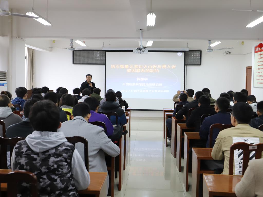 29日上午,贺振宇研究员在黄金校区逸夫楼第一会议室做了“锆石微量元素对火山岩与侵入岩成因联系的制约”专题学术报告。地质教研室全体教师及17、18级地质工程专业全体学生聆听了本次报告。报告会由地质工程教研室主任陈飞主持。