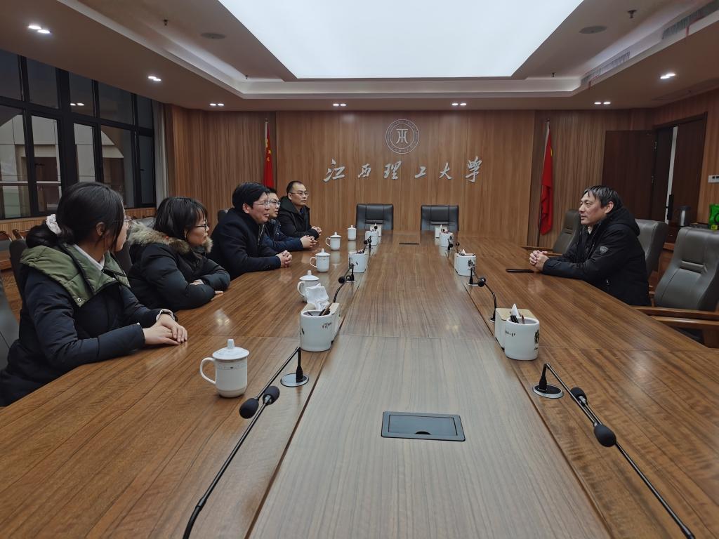 本网讯 1月23日,江西省应急管理科学研究院院长李海港、副院长黄宏卿一行来校考察调研。我校党委副书记罗仙平,资源与环境工程学院党委书记陈明、院长何桂春、党委副书记张春雷等人分别会见李海港一行,并于三江校区廉溪楼会议室、黄金校区逸夫楼第一会议室举行座谈会。