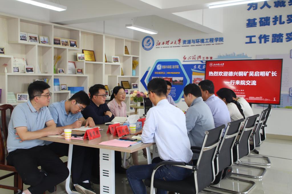 吴启明介绍了江铜集团和德兴铜矿情况,指出,德兴铜矿逐步将矿山资源开发与绿色生态理念相互结合,让矿场改造成适宜人民生活的绿色生态公园。接着,他对学院安博(中国)体系表示肯定,表示,希望校企双方可以深度开展交流,以更加广泛、更加精准、更加高效的合作方式推动地区经济发展、绿色工艺创新。