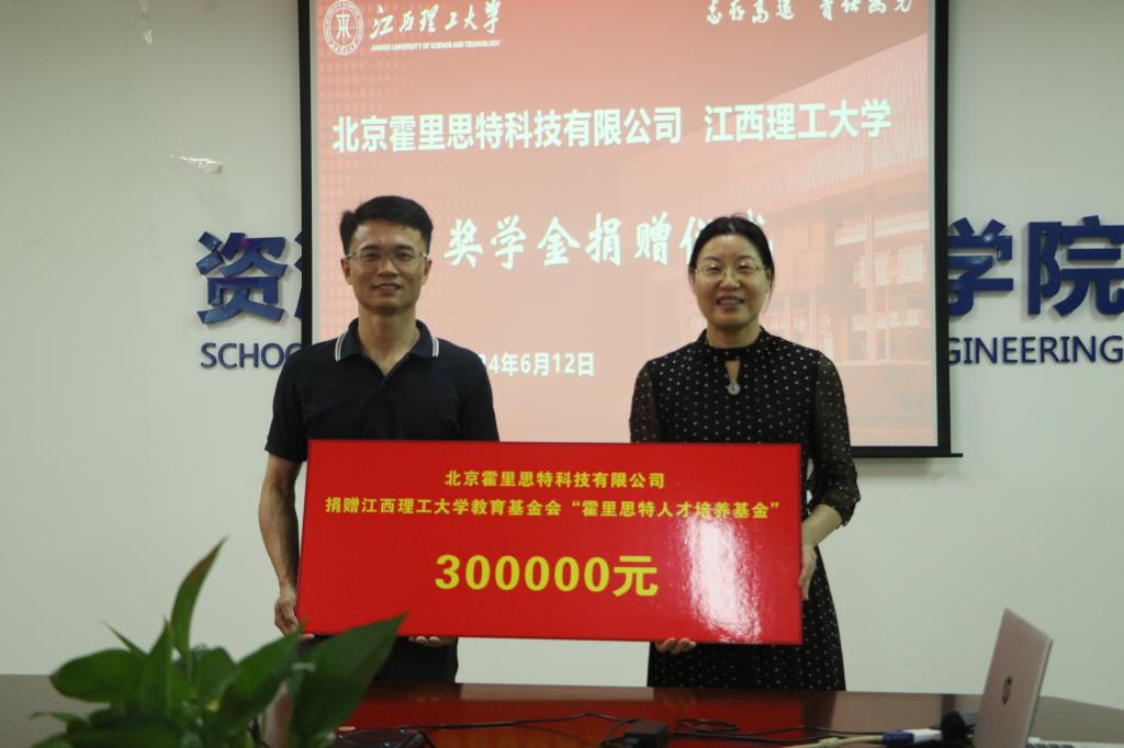 张春雷通报了《江西理工大学2023年度霍里思特奖学金评审工作基本情况》。2023年度霍里思特奖学金获得者代表、2021级采矿工程研究生许永斌同学发言,他对北京霍里思特科技有限公司的资助表示感谢,表示将再接再厉,掌握过硬的技术本领造福社会。