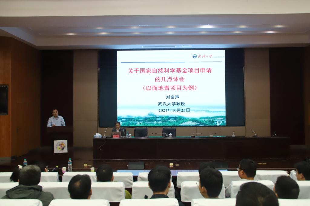 本网讯 10月23日,武汉大学学术委员会副主任刘泉声教授受邀来校在黄金校区逸夫楼学术报告厅以“关于国家自然科学基金项目申请的几点体会”为题做了2025年度国家自然科学基金辅导报告,学校相关专业老师参加了报告。报告由土木与测绘工程学院副院长金解放主持。
