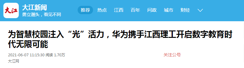 江西理工大学信息中心主任赵国辉表示:“华为基于F5G技术打造的全光网络具有全网接入能力、较高的宽带和较远的距离、灵活的带宽分配、易于升级扩展等特性,使我们江西理工大学智慧校园的建设避免了重复投资、有效节省了综合布线的工作量、缩短了施工周期,大幅度降低了总体建设成本,不仅保障了新校区正常启用,还可以支持校园网流量的爆炸式增长。”