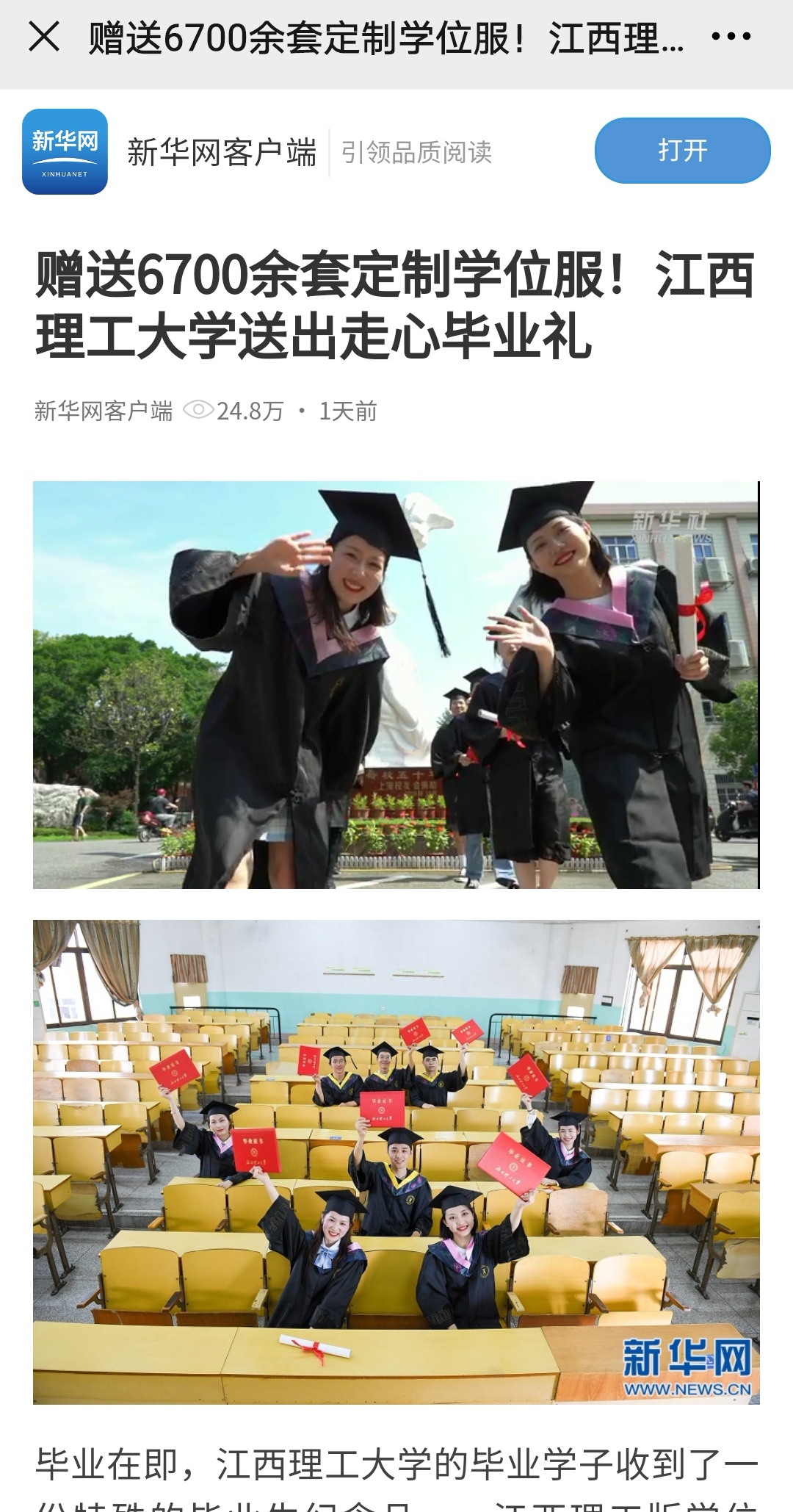 毕业在即,江西理工大学的毕业学子收到了一份特殊的毕业生纪念品——江西理工版学位服。