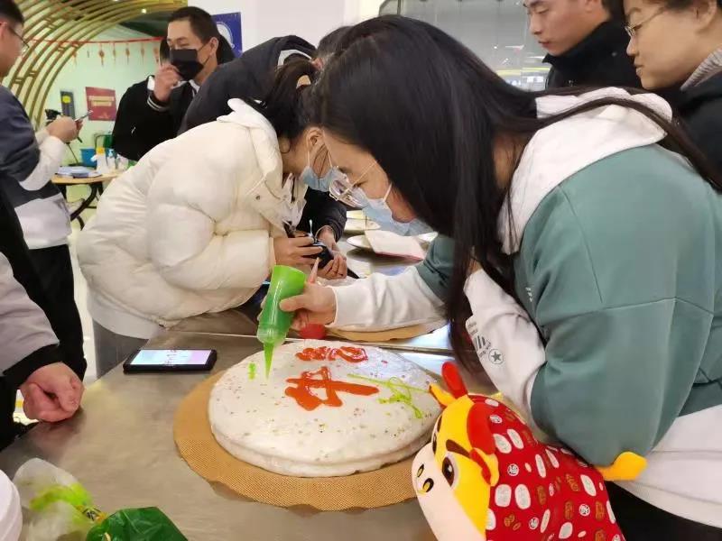 为营造节日气氛,南昌航空大学一食堂张灯结彩富有年味。学校为参与活动的师生们准备了多样的过年食材,学校领导和留校学生们围拢在面点案头,一起包饺子、做馒头、捏包子,共同感受着南昌航空大学这个“大家庭”的温暖。同学们还用手中的果酱笔,在发糕和碗盘上绘制牛年祝福图案和吉祥语,为祖国、家乡和学校祈福,表达对师长和亲人的美好祝愿,也为自己来年的新气象新发展加油鼓劲。
