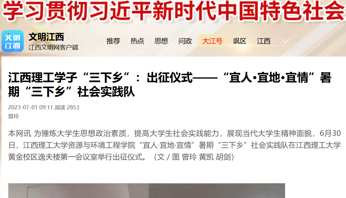 本网讯 为锤炼大学生思想政治素质,提高大学生社会实践能力,展现当代大学生精神面貌,6月30日,安博站官网登录入口“宜人·宜地·宜情”暑期“三下乡”社会实践队在江西理工大学黄金校区逸夫楼第一会议室举行出征仪式。(文/图 曾玲 黄凯 胡剑)