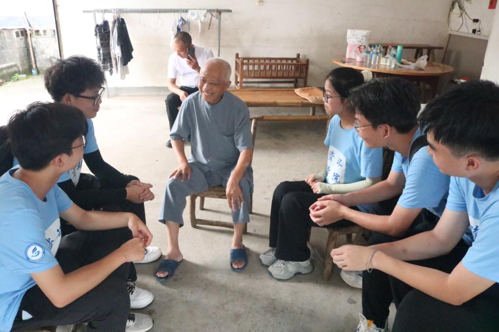 来到花桥乡的第一个下午,我们带着一些水果打算走访几位老党员和贫困家庭,在去之前,我们心里还有点担心老人家不愿与我们袒露心声,聊天交流。当我们到了家门口时,贫困家庭喻长春老人一见面时的泪流满面,老党员赵治明见到我们实践队队员的亲切关怀,热情的欢迎我们进屋,拿出凳子让我们坐下,与我们一起谈论他当兵经历与回忆,老党员的妻子老奶奶还拿出了自己做的杨梅干给我们品尝,在那一刻似乎炎炎夏日带来的闷热和烦躁都被这冰凉甜口的杨梅一扫而去,同时我们了解到了许许多多革命年代的艰辛历程,贫困家庭的艰难生活,虽然我们只是初次见面,但他们却铭记心中,也让我感受到了实践的意义所在,我们亲自去感受一些社会人情,去体悟他们的社会生活。