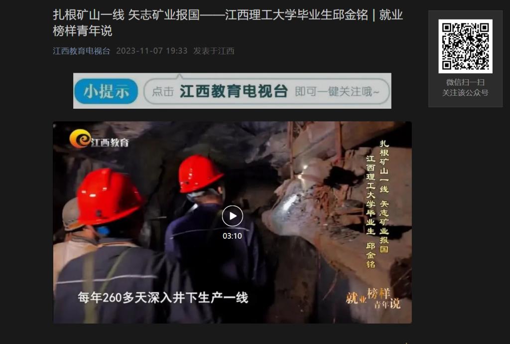 《江西省教育厅》:扎根矿山一线 矢志矿业报国——江西理工大学毕业生邱金铭 | 就业榜样青年说