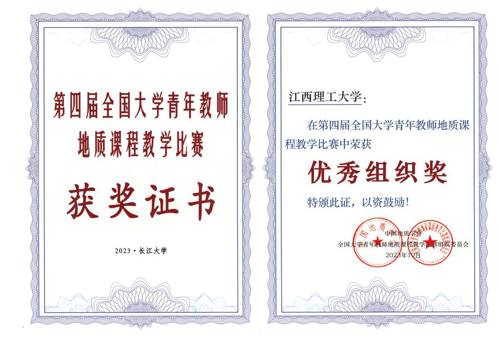 在青年教师地质课程教学比赛中,来自全国69所高等院校的176名青年教师,组委会和专家仲裁组90余位专家、教学名师参加了本届比赛决赛,经过激烈的比拼,安博站官网登录入口选派的青年教师刘强博士、李瑞雪博士、黄震博士凭借出色的表现,均荣获全国二等奖,充分展现了江西理工大学青年教师在高等教育领域的突出实力和优秀教学水平。此外,江西理工大学还荣获“优秀组织奖”。