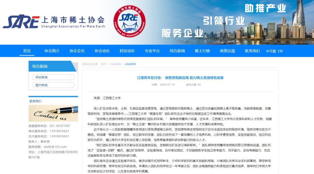 “坚持稀土资源的绿色可持续发展是我们团队的宗旨。” 指导老师董伟介绍道,近年来,江西理工大学充分发挥科研和人才优势,组建科研团队深入矿区周边乡村,为“稀土王国”赣州的乡村振兴发展提供技术支撑、人才支撑和成果供给。