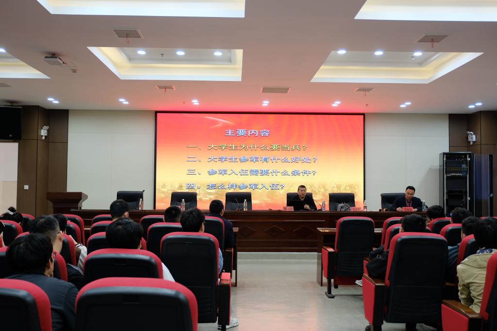 随后,在11栋教学楼101召开了师生见面会暨就业与征兵动员大会。谢海强做了征兵动员,他从大学生为什么要当兵、大学生参军有什么好、参军入伍需要什么条件、怎么样参军入伍四个方面做了介绍,鼓励同学们积极参军报国。