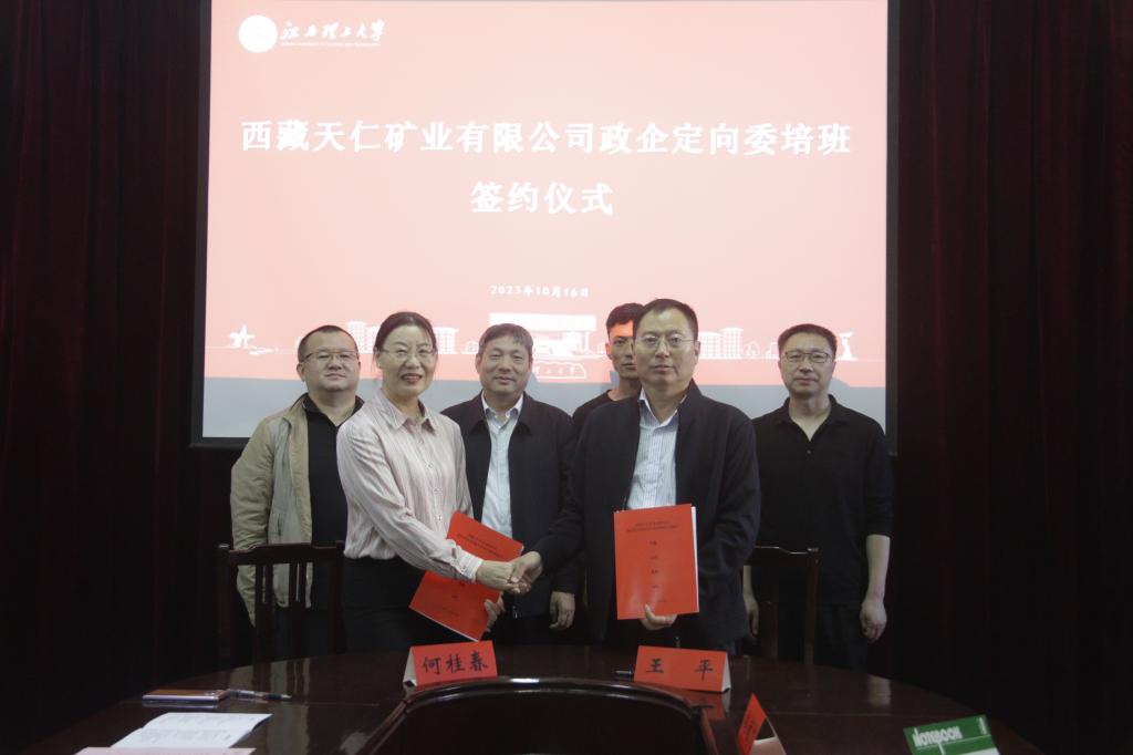 在签约仪式上,罗仙平对西藏天仁矿业有限公司的到来表示欢迎,介绍了自己在西藏的工作经历,希望校企以此次培训班为契机,开启全面深入的校企合作。何桂春表示,在委培班项目上,学院将努力做到让公司满意、政府满意、学员满意。魏川波表示,学校在食宿条件、教学设备等学习生活条件给予充分保障,希望校企加强交流沟通,做好委培班的各项工作。