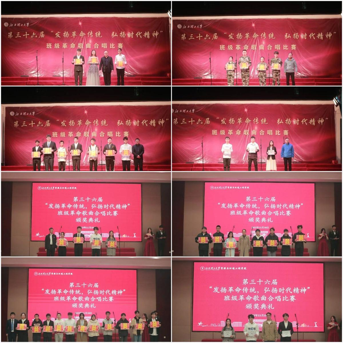 本网讯 11月18日-19日,我院分别于黄金校区逸夫楼学术报告厅和红旗校区大礼堂相继举行了第三十六届“发扬革命传统,弘扬时代精神”纪念“一二·九”运动班级革命歌曲大合唱老生组和新生组比赛。班级“三联系”领导、校党委副书记罗仙平、发展规划处处长吴贤振、图书馆馆长蔡福瑞、招生就业处副处长王晖以及全体辅导员、班主任参加了比赛,学院2021、2022、2023级本科生以及2023级博硕研究生、西藏天仁矿业委培班以班级为单位共计36支参赛队伍参加此次比赛。