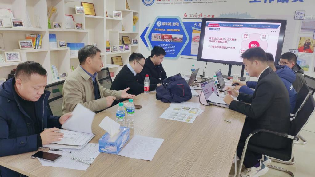 积极备赛的资源与环境工程学院葛浩然、稀土学院程浩和应急管理与安全工程学院杨雨润、余晨颖四名同学介绍了准备情况并进行了模拟展示。