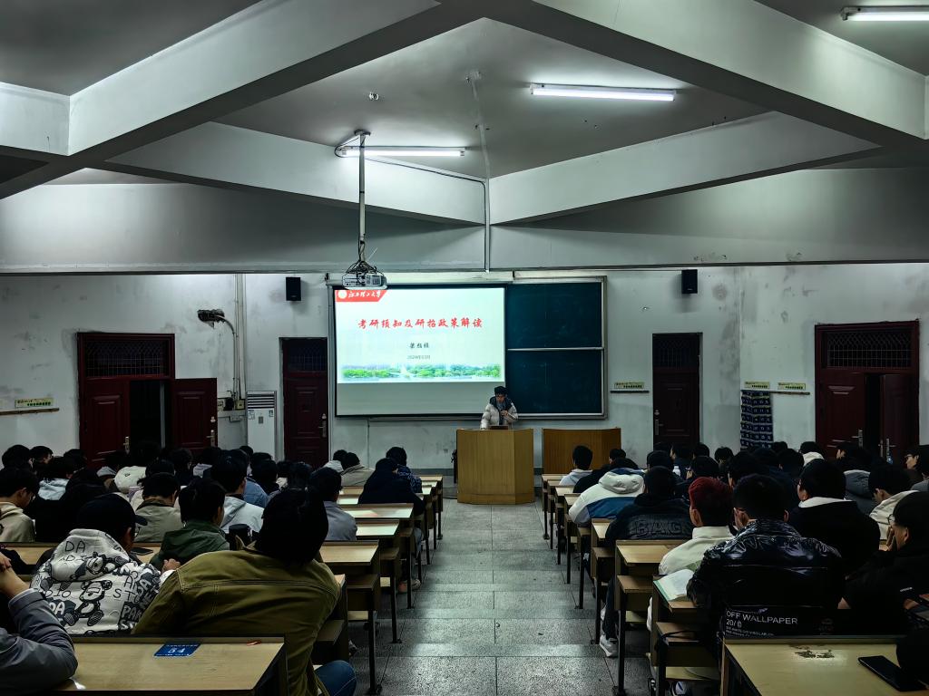 会议第二阶段,梁颜祯以“考研须知及研招政策解读”为题向2021级同学全面解读了考研相关内容并做动员。他结合2020级考研和就业实际情况,向与会同学提出了中肯的建议,希望2021级同学综合往届同学考研经验、汲取往届同学考研教训,做好规划,尽早行动。