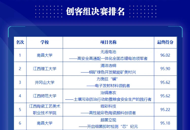 本网讯 9月4日上午,第八届“创客中国”江西省中小企业创新创业大赛颁奖仪式在南昌举行。我院所推荐的《清洁选铜——铜矿绿色开发赋能矿美村兴》项目团队一往无前,经过项目网评、前期初赛、省复赛和省决赛等环节,最终从全省众多参赛项目中脱颖而出,跻身创客组10强第2名获二等奖的好成绩。我校荣获“优秀组织奖”。