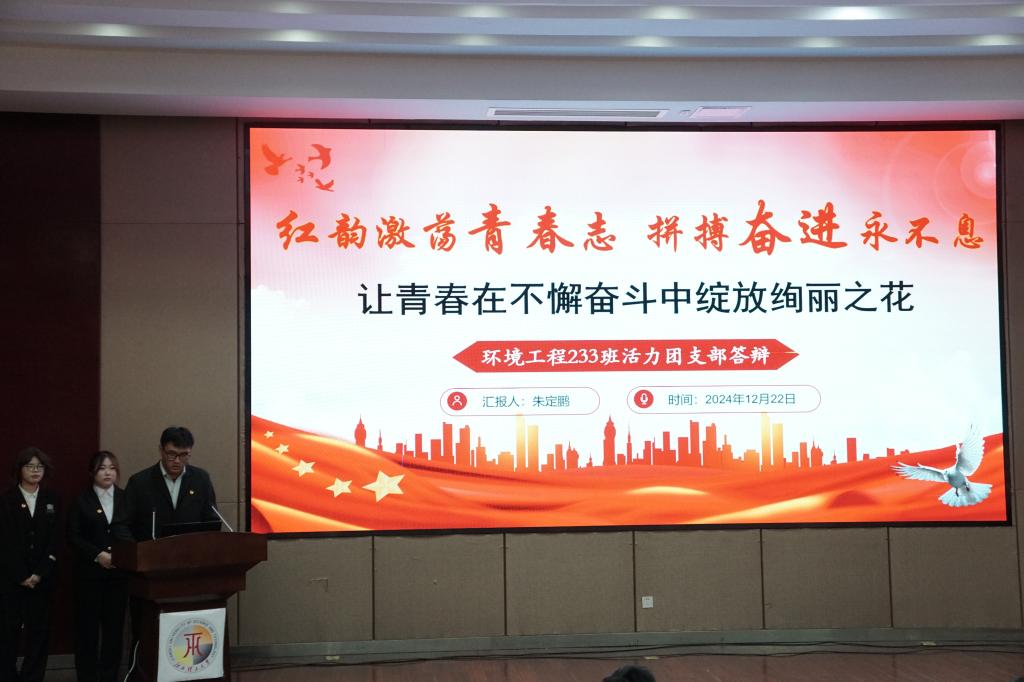 随着全体唱响团歌,评选大会正式拉开序幕。2022级、2023级、2024级共37个团支部按照抽签顺序依次上台答辩,各团支部通过内容形式多样的PPT展现出各团支部的优良风貌,回顾了支部本年度的工作内容,总结了工作经验,畅谈了未来计划