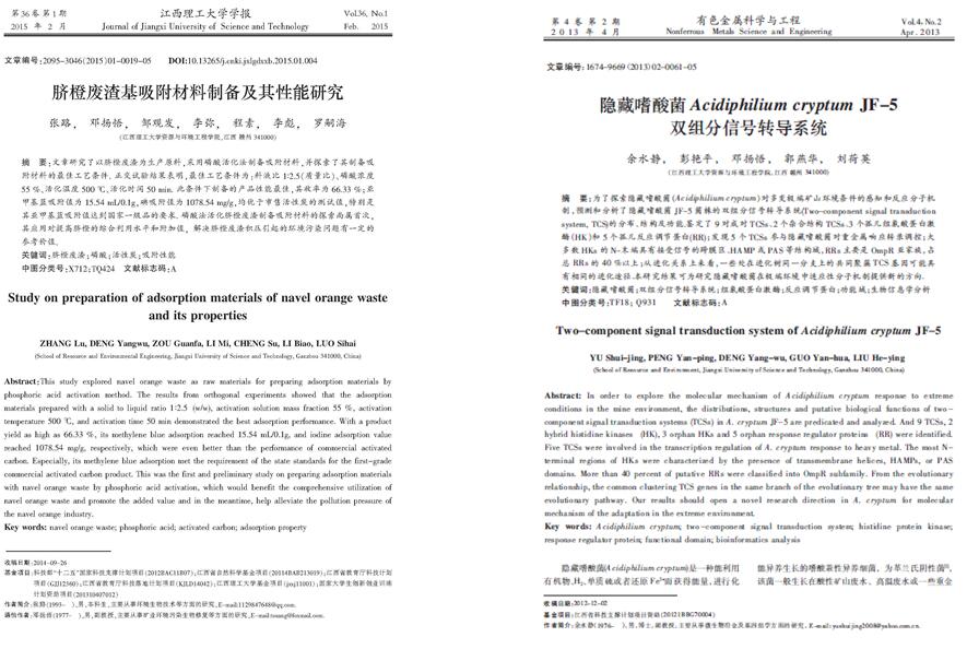 男,1976年5月生,博士,副教授,硕士生导师,江西省微生物学会会员,安博站官网登录入口生物工程教研室主任。1999年和2004年分别获得江西农业大学农学学士学位和微生物学硕士学位,2012年3月获得上海交通大学生物医学工程(生物技术)专业博士学位,2013年9月至2014年9月美国伊利诺伊理工大学访问学者。目前主要从事环境微生物及固废资源二次开发利用等领域研究,主要涉及微生物冶金、废水微生物处理技术、农业固废微生物转化处理技术等;近年来先后主持国家基金项目、省部级项目、重点实验室开放基金项目等10余项,发表学术论文40余篇,其中高水平论文/EI收录论文14篇。