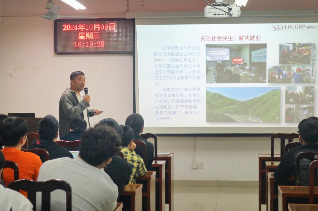 宣讲会上,朱志强详细介绍了公司的经营情况和招聘需求。他提到,公司本次主要面向采矿工程、矿业工程、资源勘查工程、地质工程、安全工程以及矿物加工工程等专业进行招聘,提供了包括本科和硕士在内的多个岗位选择。朱志强还详细介绍了公司的岗位待遇,包括具有竞争力的薪资待遇、完善的福利制度以及丰富的个人职业发展规划等。他特别强调,公司不仅提供六险一金、包吃住水电等福利,还为员工提供了年度旅游、出国学习交流等机会,以及每年探亲假期和额外的周六驻地休假,旨在全方位关心员工的成长和生活。
