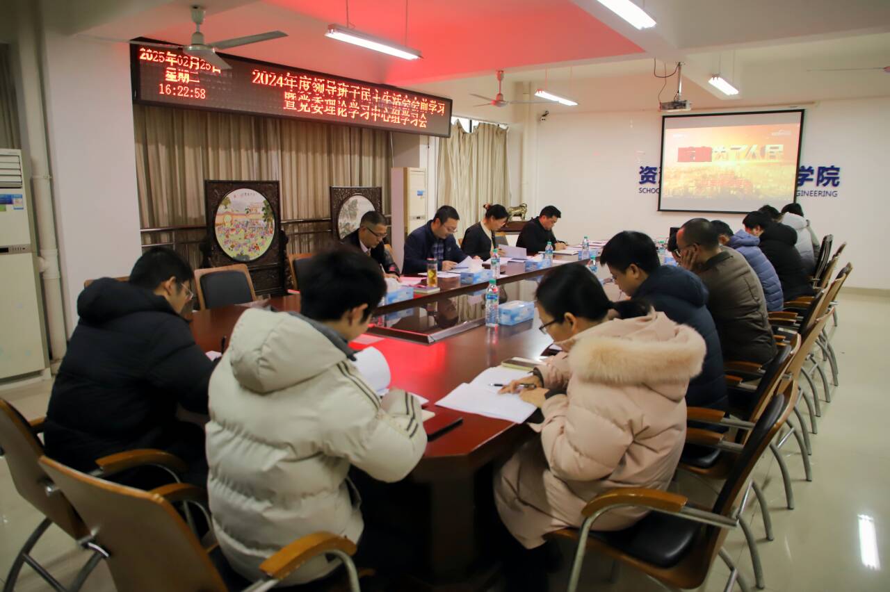 本网讯 2月25日,我院于黄金校区逸夫楼第一会议室召开2024年度领导班子和党员领导干部民主生活会会前学习暨党委理论学习中心组学习会,学院党委书记陈明、院长何桂春、党委副书记张春雷、副院长陈飞、副院长余新阳以及党委委员、师生党支部书记等参加了会议。会议由陈明主持。