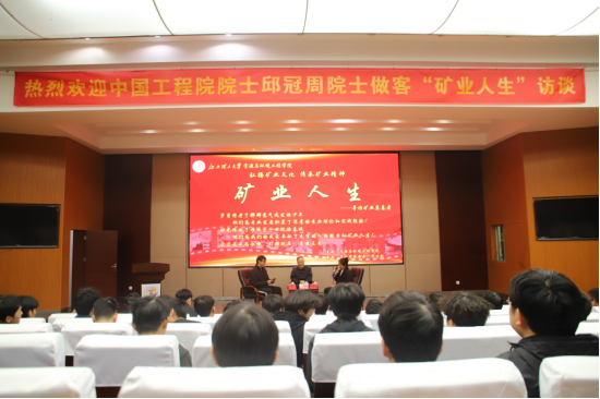 访谈开场,邱冠周便以其独特的幽默感,拉近了与在场同学们的距离。他笑称:“作为一个地道的广东人,我原本可能与矿业无缘,但人生的奇妙之处就在于,我意外地踏入了这个行业,并在其中发现了无穷的挑战与机遇。如今,我更加坚信矿业的前景不可限量。”这番真诚而风趣的话语,瞬间消除了大家对院士的敬畏感,激发了同学们对矿业未来的憧憬与信心。