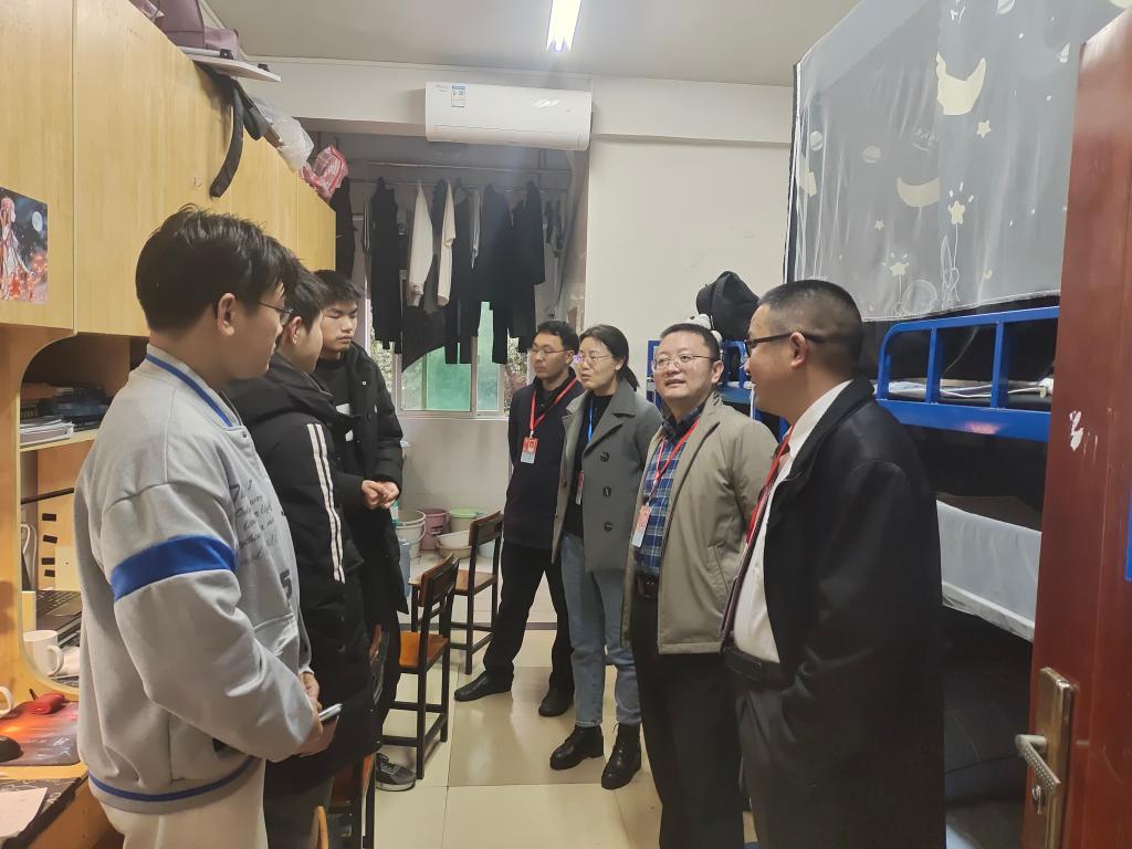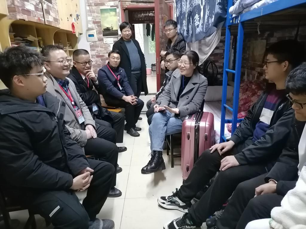 本网讯  2月12日新学期返校最后一天,我院院长何桂春、党委书记陈明、党委副书记饶先发、副院长陈飞、余新阳走访黄金校区、红旗校区学生宿舍,学院学工办相关老师陪同走访。