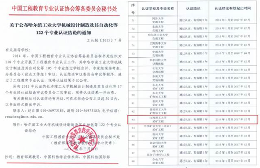 采矿工程专业是全国首批连续三次通过全国工程教育认证的专业之一,2014年获批江西省卓越工程师教育培养计划项目,教学建设实力雄厚,近年来取得了丰硕的教学成果。其中包括江西省教学成果一等奖1项、二等奖1项,江西省高等学校多媒体教学课件大赛一等奖1项,教育部信息中心多媒体课件大学组优质奖1项;组编各类专业教材6部;公开发表教改类论文10余篇;年均指导学生参加各类国家级、省部级学科竞赛获奖均保持在50人次以上。
