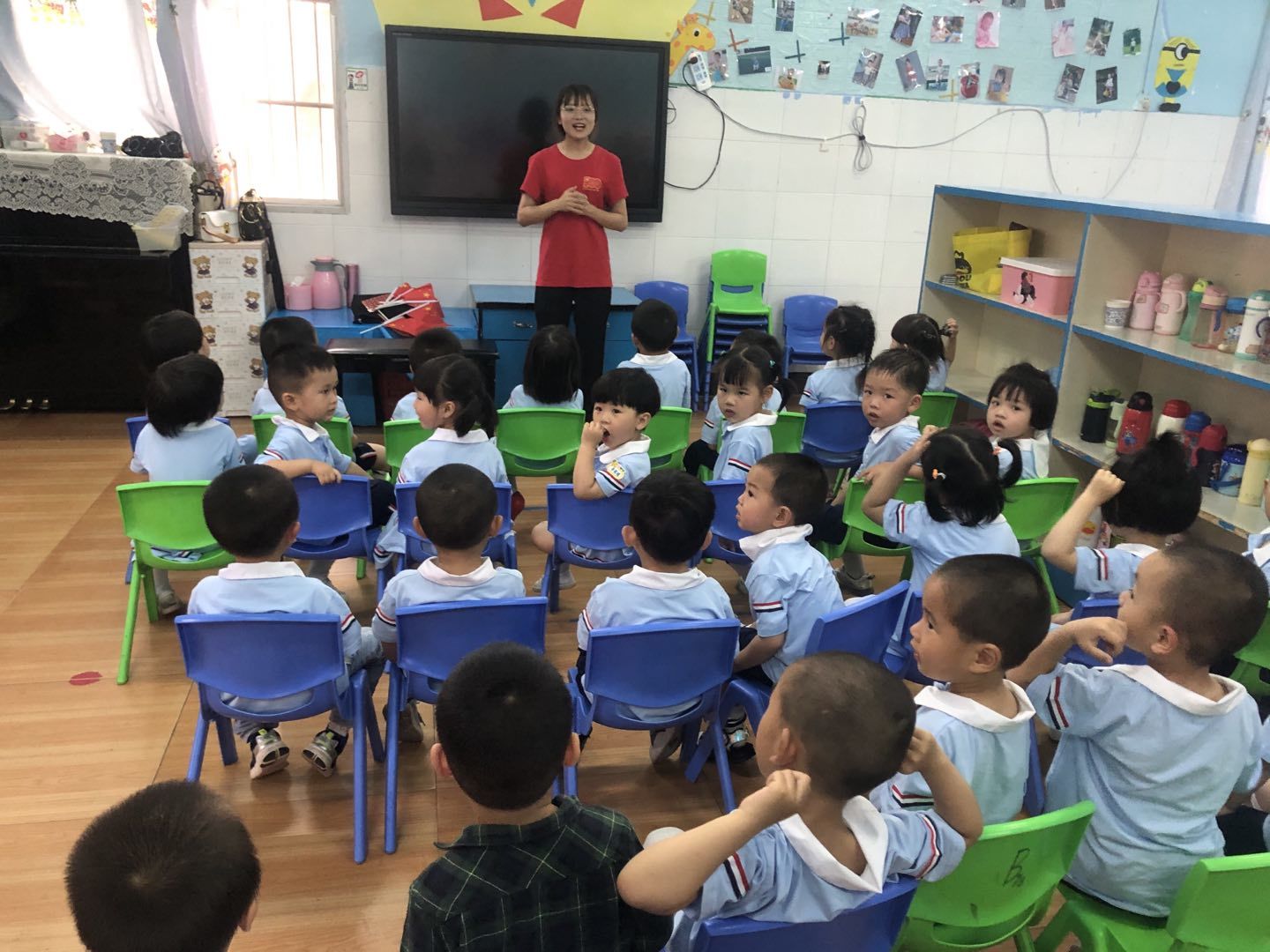紧接着,宣讲团成员向幼儿园小朋友介绍了国旗的故事,以增加小朋友对国旗上图案的了解。最后,宣讲团成员教小朋友们折小花、船等简单的折纸,气氛融洽愉悦。